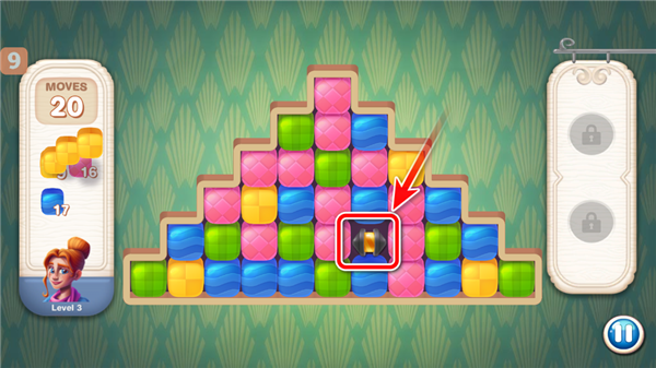 4.当消除多个相同的方块时,还可以获得强有力的道具,更好的完成关卡;
