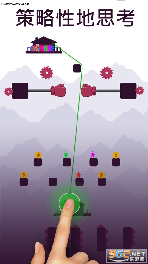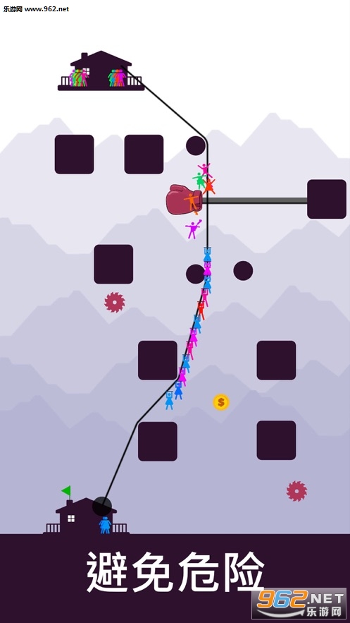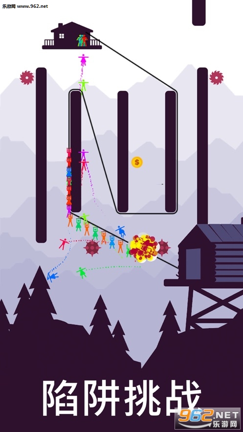 解密大师游戏是一款益智的解救人质游戏,你要利用手中的绳索解救出同伴,并没有你想象中的那么简单哦,位于高平台的角色小人,都需要你要帮助,沿途你会遇见很多危险,巨型齿轮,尖尖的倒刺,锋利的匕首,这都是你要面对的困难,你能完成挑战吗?
