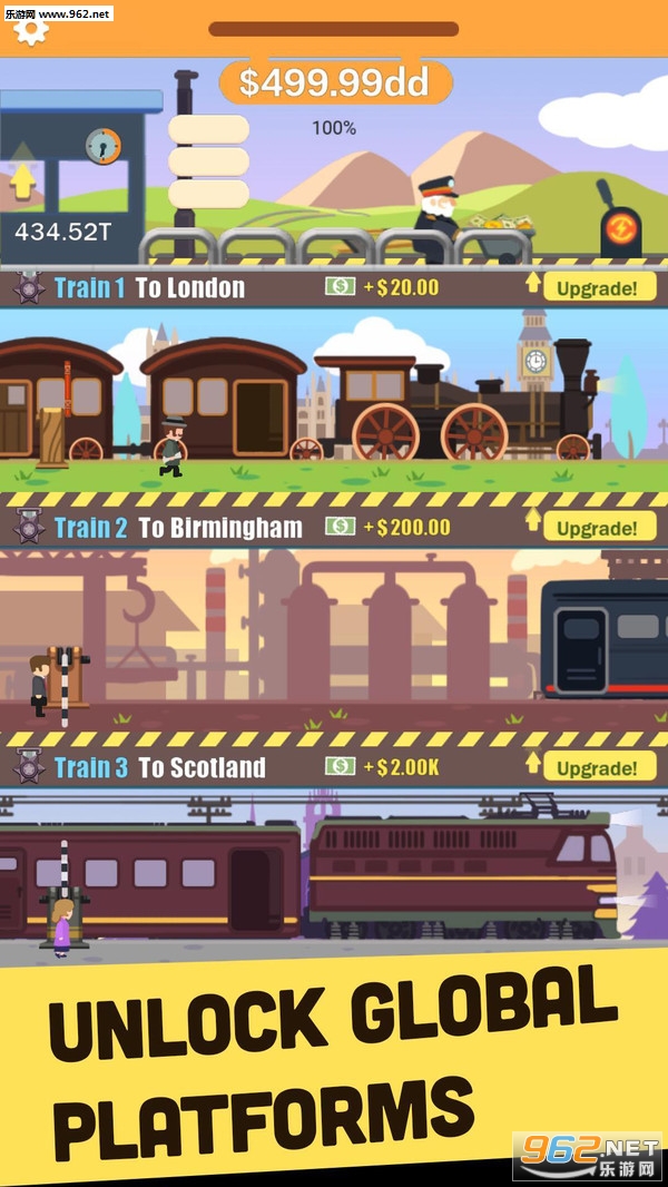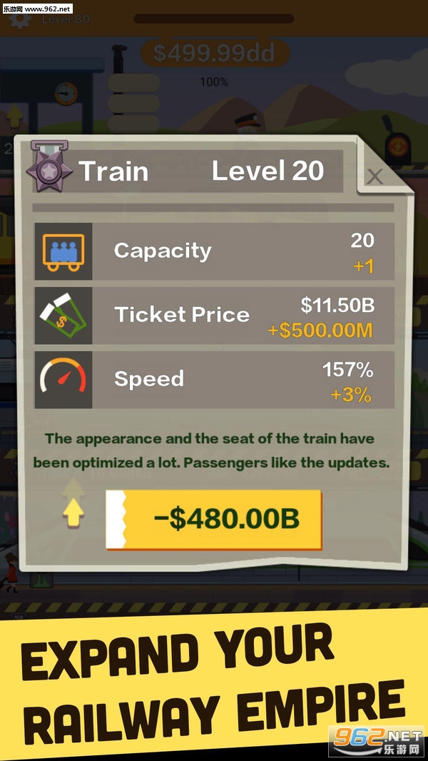 非常轻松休闲的一款模拟放置点击类手游,简约的画风简单轻松的游戏玩法带给玩家们简简单单的游戏乐趣,不断运送乘客赚取金钱,升级说车扩建火车站,成为火车大亨。
