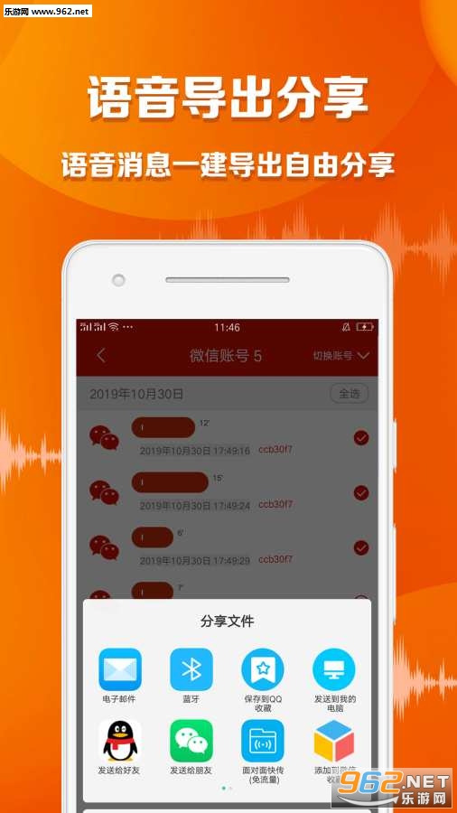 语音导出大师支持多种分享方式,一键即可将你的语音文件分享给好友