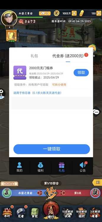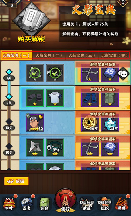 4、推进主线可解锁【宝典奖励】,领取装备、忍者碎片等关键资源。