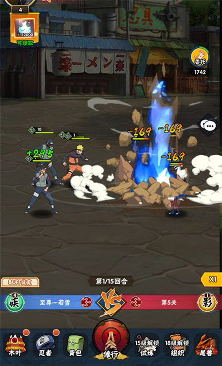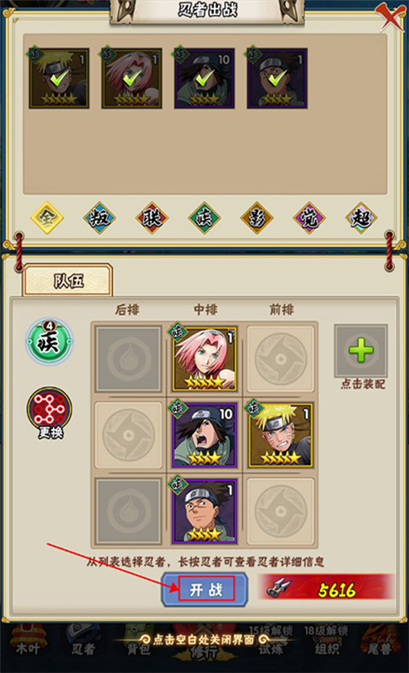 5、利用所得资源,对心仪忍者进行装备穿戴、等级提升与星级突破,全面强化战力。
