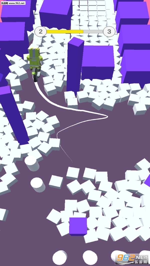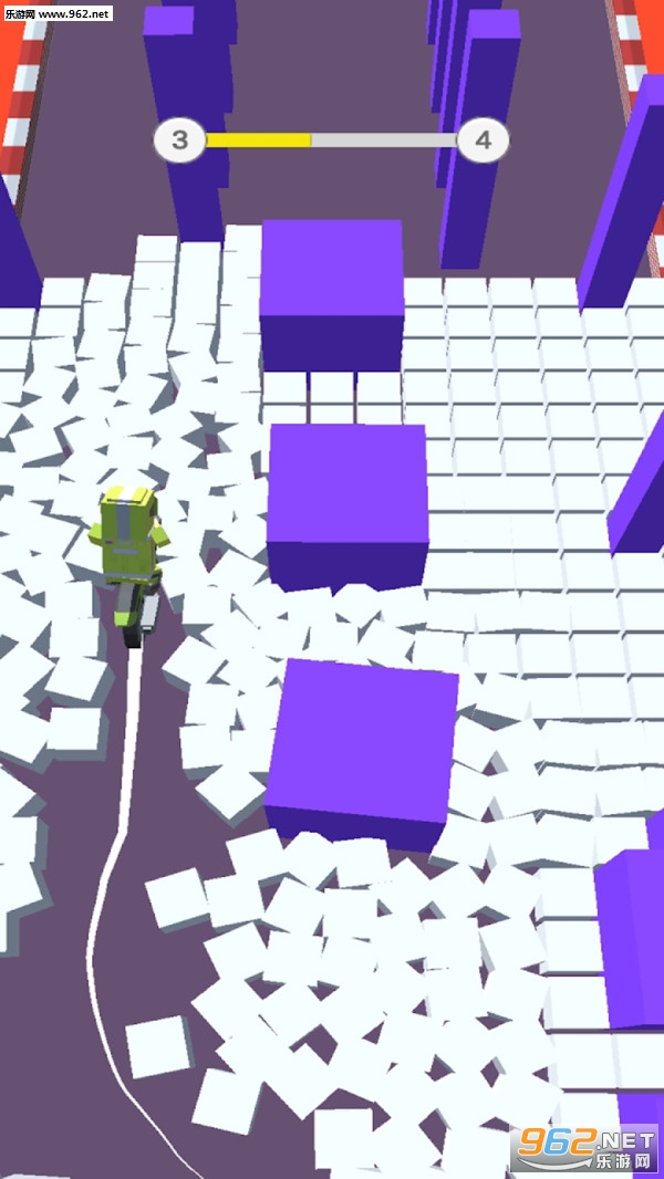 《绿色小人自行车手游》是一款很休闲的躲避闯关游戏, 你的方块小人骑着自行车在马路上行驶,但是马路上有很多的方块,你只能碰触白色的方块,其他颜色的都不能接触,你要利用白色的方块去清扫彩色方块障碍,成功抵达终点。