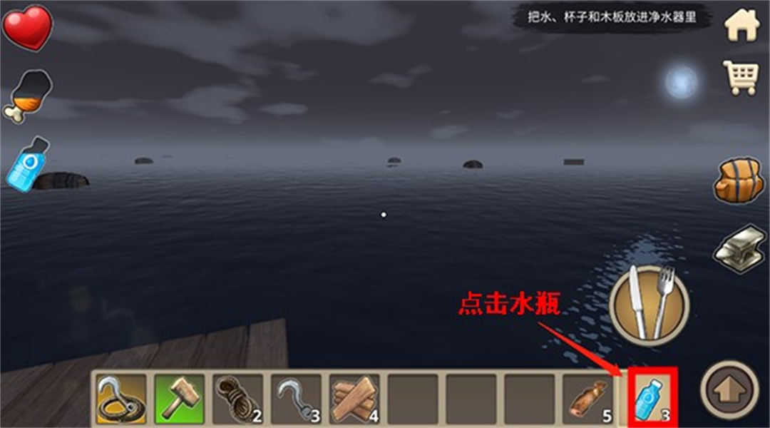 1、务必尽早制作初级净化器和杯子,避免饮用海水导致脱水。