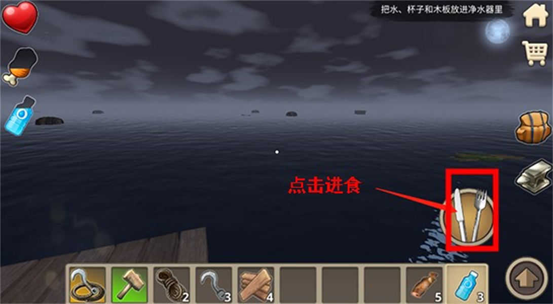 4、使用木板作为燃料——在引擎中钻孔后放入木板,即可为木筏提供持续前进动力。