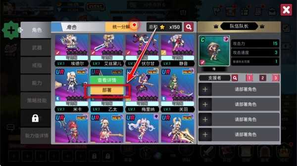 首先进入【队伍】界面,选择你希望设为队长的高战力角色,点击其部署”按钮。随后,点击界面上方标有队长”的方块,即可完成队长切换。此操作能确保你的主力阵容顺利出战,避免因等级限制导致编队失败。