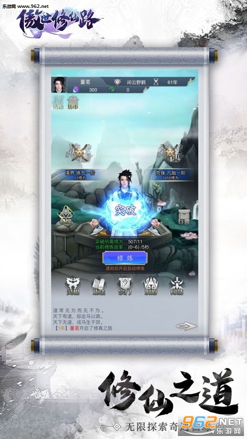b、主打放置修真玩法,可以让玩家们轻松的玩转仙侠,还能与我们的主角一起走近这个修真世界。