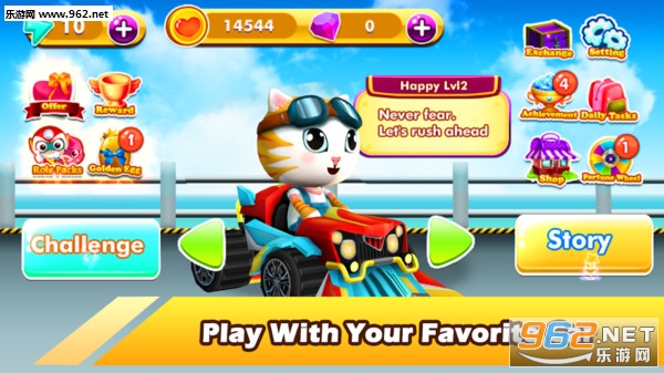 萌系的卡通动物形象设计,简单的赛车乐趣,也有着丰富的赛道挑战乐趣和多样化的赛车选择,各种可爱的小动物也可以随时替换,趣味的卡丁车赛车和你喜欢的小动物一起去角逐冠军。