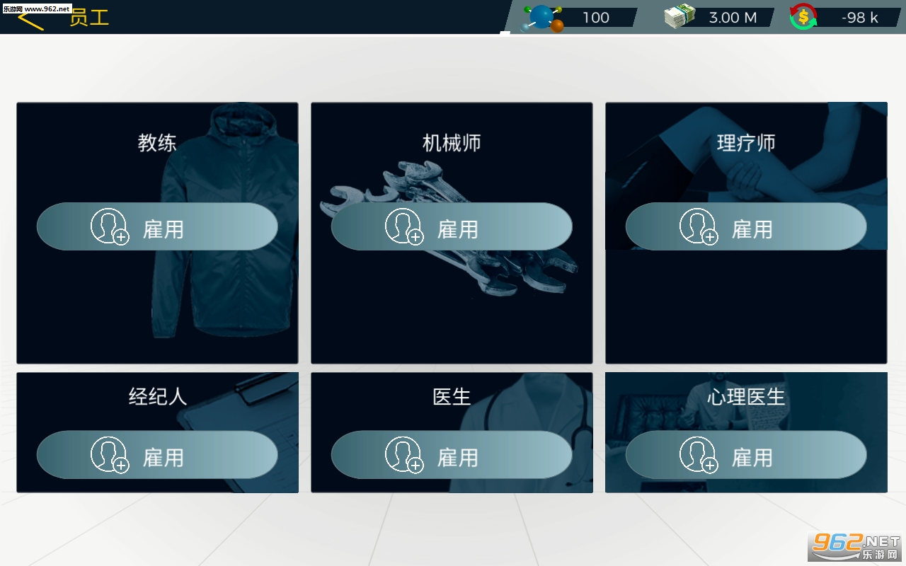 雇用服务车供应商,建立最强车队,帮助车手们在赛事中获得更理想的成绩,让他们得到更好的休息。