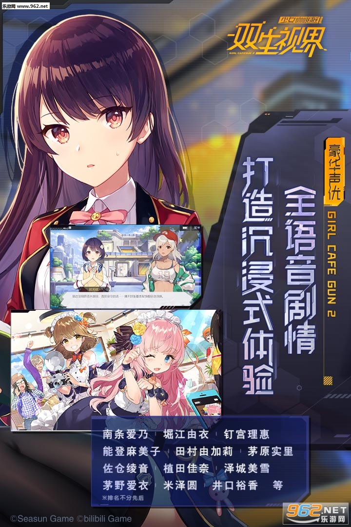 南条爱乃、堀江由衣、钉宫理惠、能登麻美子、田村由加莉、茅原实里、佐仓绫音、植田佳奈、泽城美雪、茅野爱衣、米泽圆、井口裕香等超人气声优将为你带来全角色、全方位的听觉盛宴,佐以百万字剧情文本的豪华香料,打造一本满足的沉浸式互动体验!还有南条爱乃倾情献唱游戏主题曲,战歌起,颜表立。守护少女们的笑容,一起谱写末日危机之后的美好未来吧!