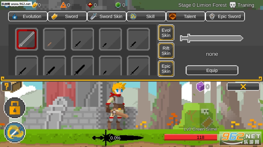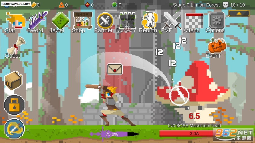 《自我剑剑闲置官方版》是一款像素风格的点击战斗游戏,游戏中的战斗方式非常的简单,不断的点击屏幕攻击对方即可,还可以点击强力技能进行攻击,当然技能是有着冷却时间的,可以解锁众多的武器进行战斗,有着PVE和PVP两种玩法。