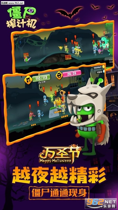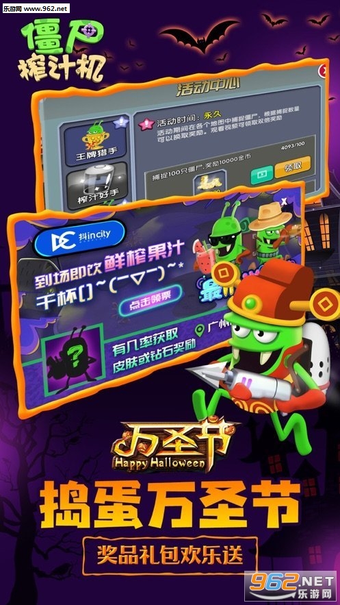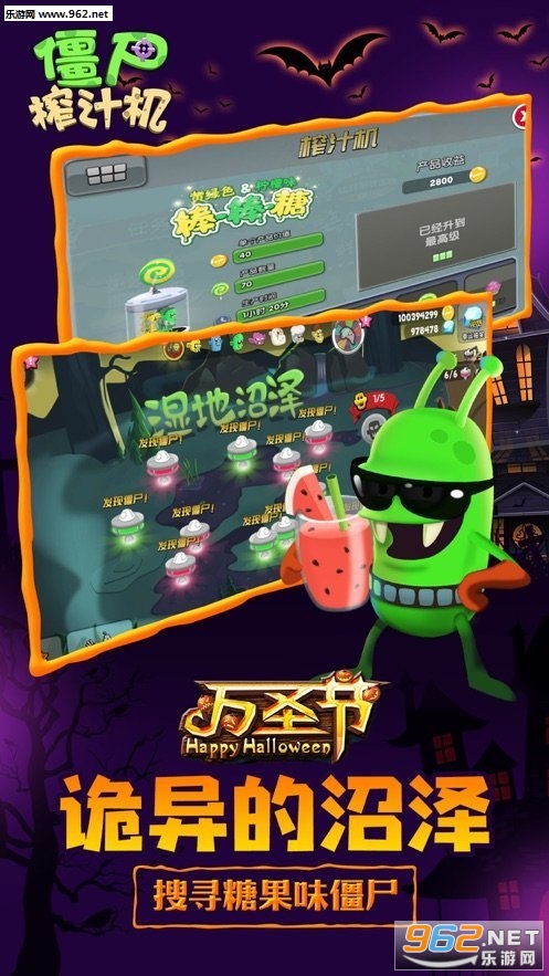 《僵尸榨汁机假面派对版》是一款超人气的休闲经营小游戏,玩家在这里面将是一个果汁店的老板,而你的店里面最好卖的果汁就是僵尸,而且用不同的僵尸榨出来的果汁特别的不同口味。这次更新是全新的万圣节版本的上线,加入了很多的狂欢的玩法,还有着很重要的限时玩法等待着玩家过来,你将体验到不同反响的游戏体验。每一种都是设计师精心设计的非常的有特色。