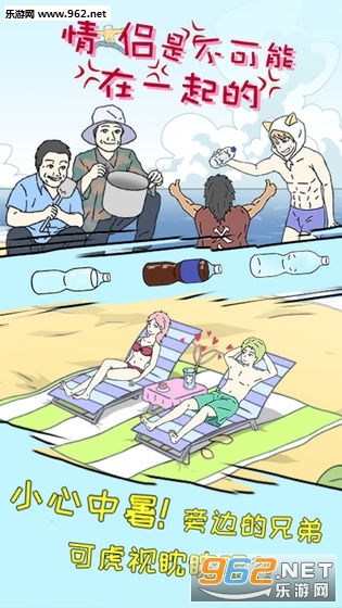《情侣是不可能在一起的手游》是一款脑洞十足的解谜冒险休闲游戏,关卡设计的很有创意,玩家游戏的目的就是破坏各种秀恩爱的情侣,有你在情侣是不可能在一起的。仔细的进行观察,找到有用的道具吧,考验脑洞的时刻来临了,喜欢的玩家们就快来下载吧!