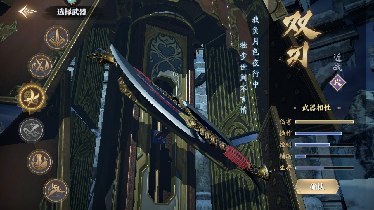双剑:罕见的远程武器,操作如御剑术般飘逸,在伤害、控制与机动性上表现全面。