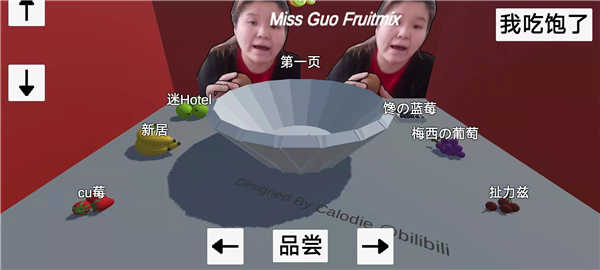 首先打开《郭老师3d水果捞手机版》,点击左上角的上下按钮即可自由调整视角,全方位观察水果摆放;