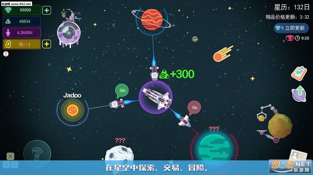 在数十个不同的星球间探索、交易特产;同时开发星球、收集材料、制作产品;