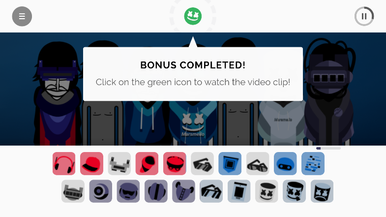 游戏延续《节奏盒子》最经典的交互机制——通过将音效标签拖拽至卡通角色身上,为其赋予独特声音。每个角色可叠加多个音效,形成丰富的节奏层次。在Marshmello模组中,所有音效均经过精心设计,涵盖标志性的合成器旋律、强劲鼓点及经典人声采样(如Ooh!”、Yeah!”),让你一键打造地道的Marshmello风格电音作品。