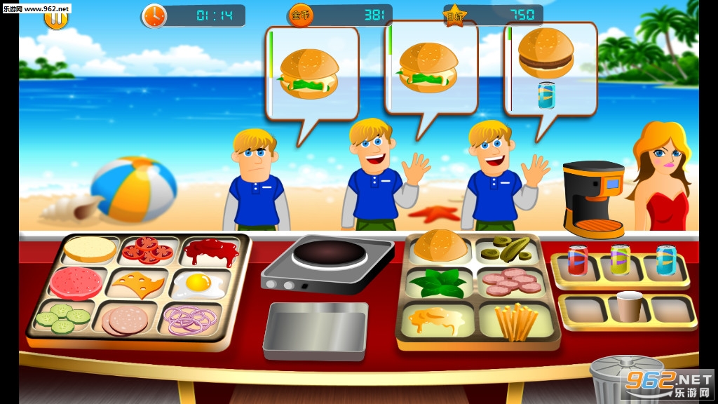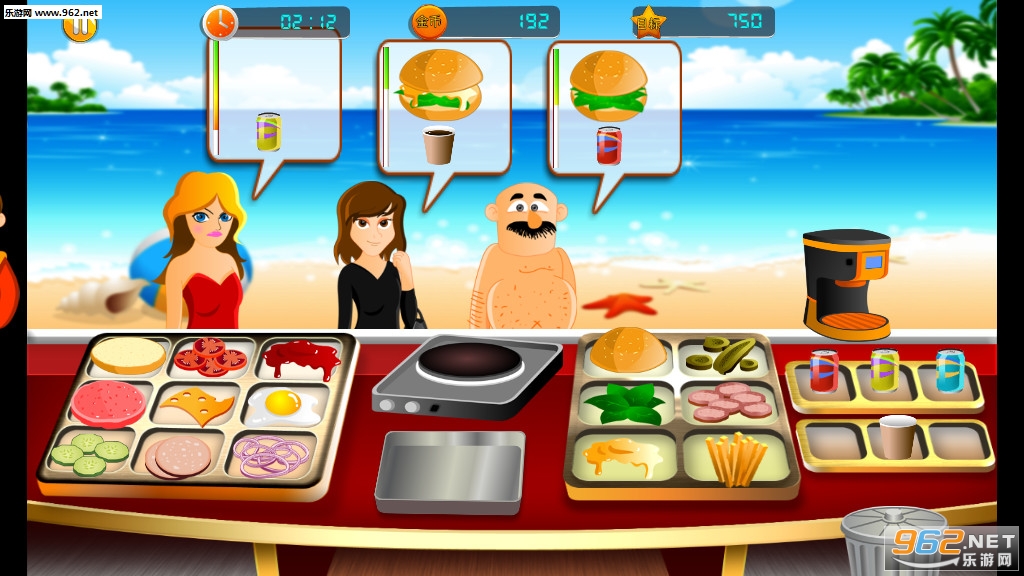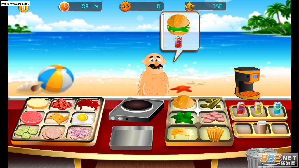玩家需要通过自己的手速来快速的做出让客人满意的食物,如果你做的太慢,则会投诉你;