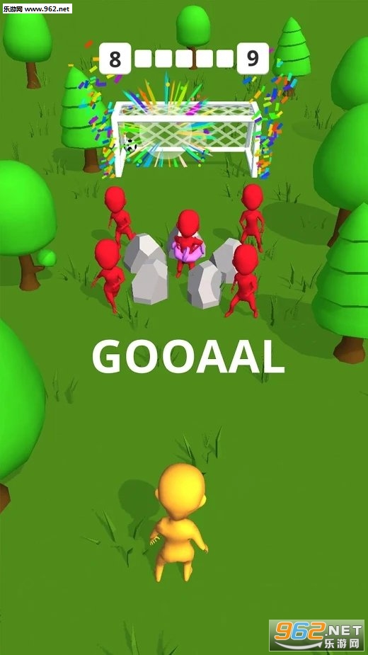 调整角度,对准球门,射门得分! 只要确保你在进球前没有撞倒对手的全部球员。