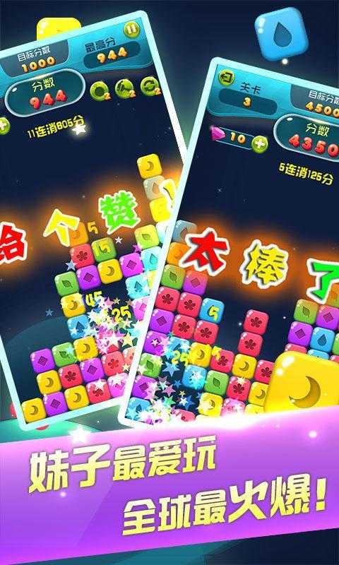 星星精灵消消是一款在消灭星星基础上改编的全新消除手游,游戏中你可以轻松点击消除方块,华丽连消,酷炫道具,全新玩法,喜欢消除游戏的玩家推荐一试哦!游戏以破解,可以免费购买钻石哦!