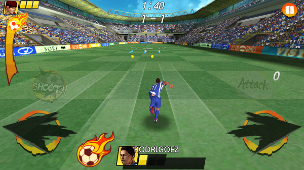 躲避着冲着冲着你的几十个后卫进球赢得比赛。用你的节奏感,速度,和集中突破固若金汤的防守。征服5个足球联赛,成为世界排名第一的球队。这是一场精彩的足球比赛。