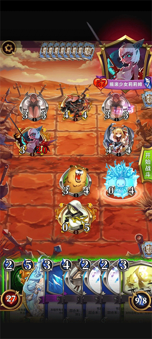 莉莉丝试炼:前4回合敌方召唤两个+1攻魔王;第5回合全场怪物变异为鬼”;第6回合初触发全灭我方场上单位的效果。关键点在于保护终焉的亚当”——若其被消灭,则直接判定胜利。整体节奏偏快,注意监控莉莉丝血量。
