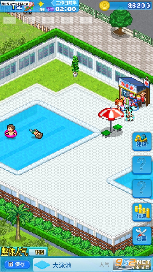 《夏日水上乐园物语》是一款像素风格的模拟经营游戏,游戏中玩家将经营一座水上乐园,设计好各种各样的设施来让顾客们满足,不断的提高乐园的知名度,吸引更多的游客,游戏的操作简单容易上手,丰富的经营项目,赶快下载体验吧!