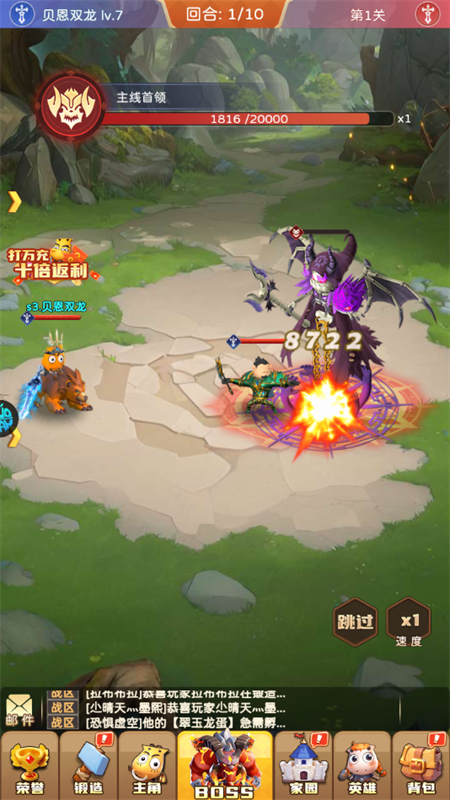 野怪与首领爆率提升十倍,击败即可掉落大量充值卡;7日登录任务直接送满星UR英雄,每期限定角色轮换,助你轻松集齐心仪阵容;活跃任务奖励海量战骑进阶道具,战力飙升不是梦!