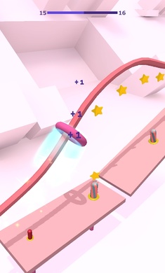 《快乐套环安卓版》是一款画面清新的敏捷类闯关冒险游戏,游戏中玩家将控制一个环冒险,可以让环在线条上移动,快速前行,也可以在陆地上跳跃前行,当然只能从一个柱体跳跃到另一个柱体上,也就是不断的套环。
