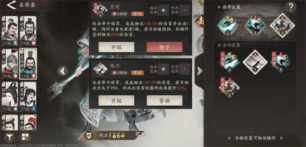 副将首推臧霸,大幅提升输出与暴击率,使雪恨”暴击特效更具视觉冲击;40级解锁第二副将后,推荐携带高览——其特技在主将移动超3格时提供攻击与防御加成,完美契合夏侯惇高机动特性,进一步强化持续作战能力。