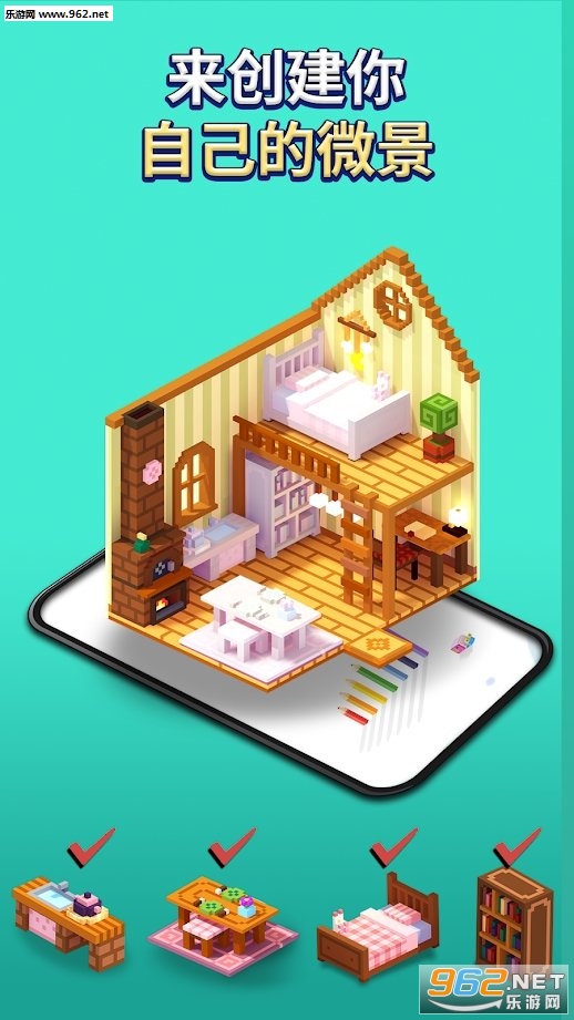 轻松好玩的游戏模式,趣味十足的填色过程,像素的自由度世界背景,创造你喜欢的微景并涂上心仪的色彩;