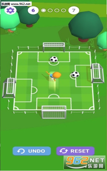 游戏中的球场看起来有点复杂,但是玩起来很简单,并不是真正的足球模拟游戏,玩家也只有一个任务,那就是射门,你只需要规划好路线避开守门员和障碍就可以了