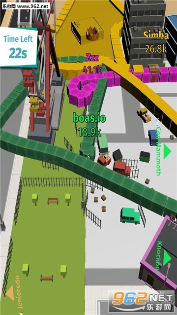 很简单的吞噬竞技游戏,在规定的时间内疯狂的吞噬建筑物,让你的身体变长,你不会死,但是要竞争排名