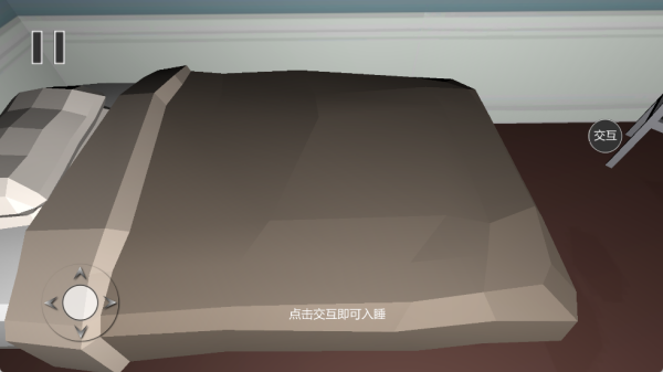 4、完成全部准备后与床铺交互进入睡眠状态,睡眠过程中将经历随机恐怖事件,玩家操作决定最终结局走向。
