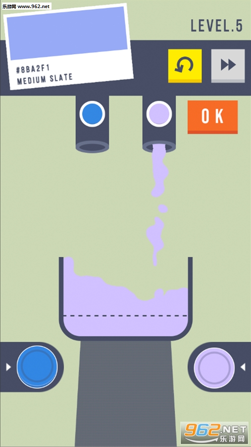 2、根据游戏指定,将两种颜色混合创造出与主题相同色彩;