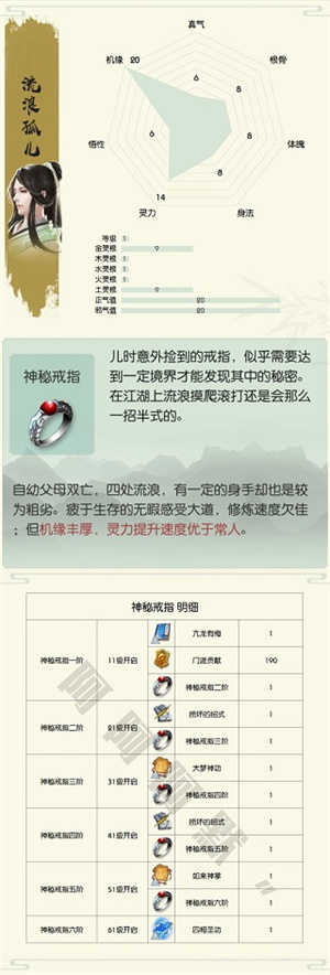流浪孤儿:自带神秘戒指,灵力成长速度更快,推荐新手首选——虽初期较穷,但系统赠送大梦神功”与四象”技能,性价比极高。