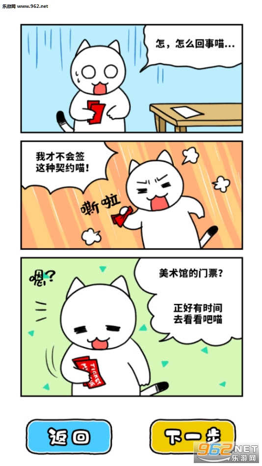 《白猫和奇妙的美术馆》是一款卡通风格的休闲解谜闯关游戏,游戏中我们的白猫意外获得了美术馆的门票,来到美术馆参观以后打了个盹就到了晚上,现在被困在了美术馆中,更要命的是这些美术作品竟然开始活动了,赶快逃出这个美术馆吧!