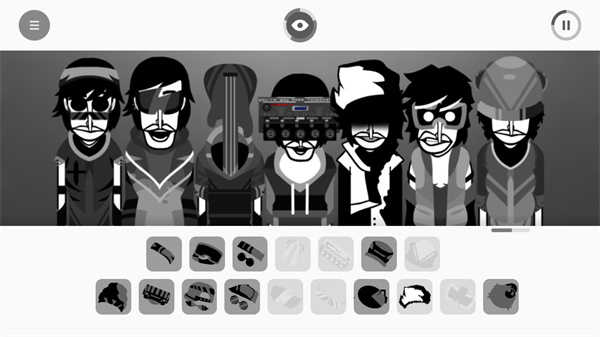 4. 进入游戏后,将不同音色的乐器拖拽至角色身上进行组合演奏。随着完成度提升,角色上方眼睛周围的黑色光晕会逐渐增多;当达成满完成度时,即可解锁专属隐藏动画。