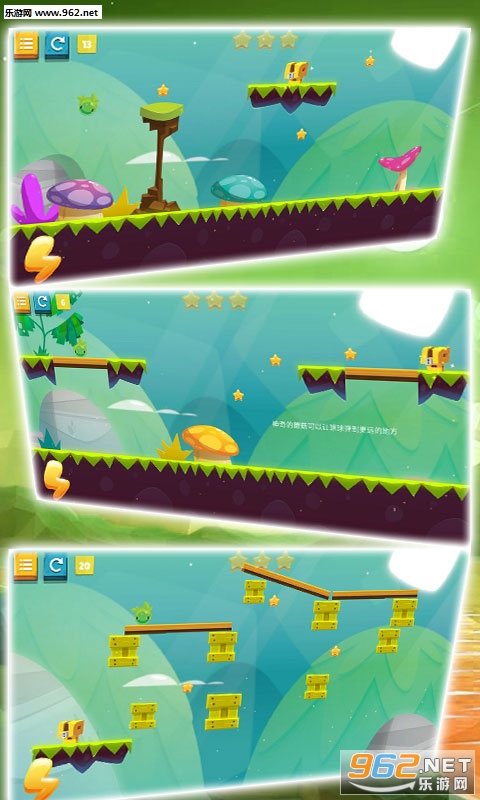 《物理球球大作战手游》是一款非常可爱的球球冒险闯关游戏,游戏的画面非常的清新治愈,超级的可爱,场景也很丰富,游戏中玩家要点击闪电标志让球球一直向前滚动,自能前进不能后退,前方有很多的机关,你要将这些机关破解掉才能让小球一直前进,抵达终点。