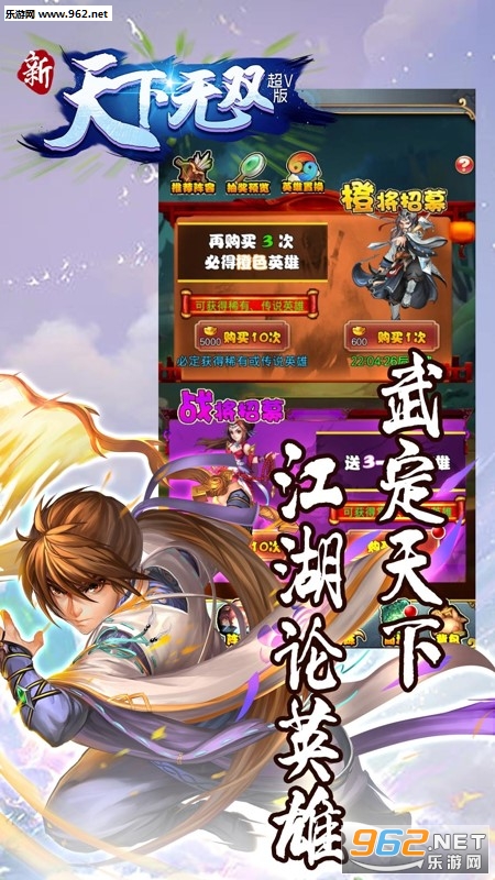 全新打造回合制卡牌手游!各种武侠人物汇聚一堂,一分高下!各种武侠人物汇聚一堂,一分高下!传统武侠结合天命、阵法、真气等独特修行系统,配置宠物神兽和宝物的玩法,体验不一样的武侠世界。江湖纷争战不休,烽火狼烟震天下,各种战斗满足你们的战斗激情。来《新天下无双》结武侠伙伴,走江湖情缘,争武林盟主!