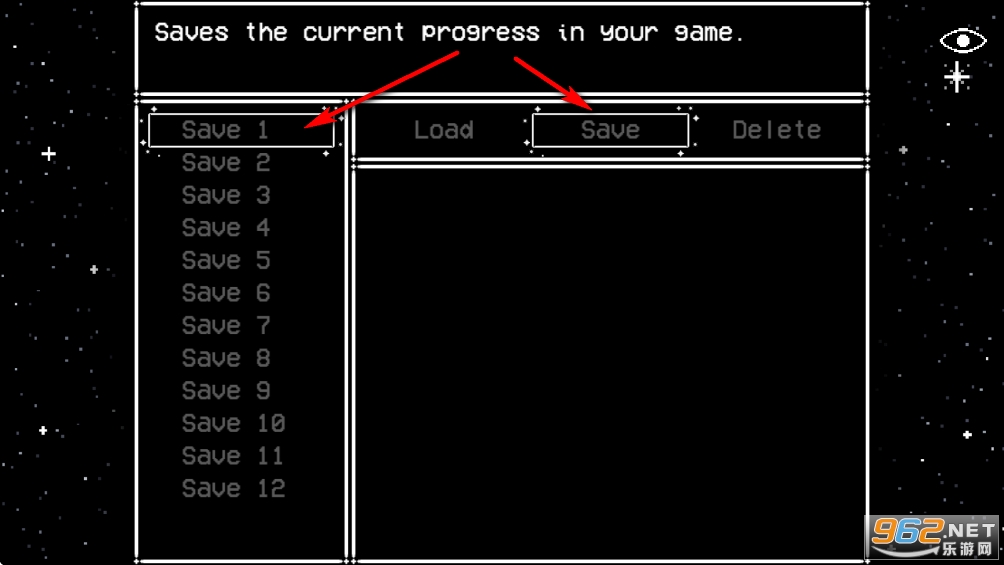 选择一个位置,点击【A】进行存档