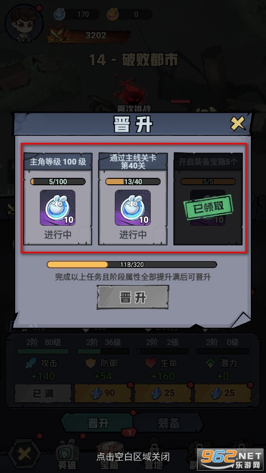 当我们满足条件以后就可以给主角晋升,晋升能将我们升级的属性进行相应的升阶。