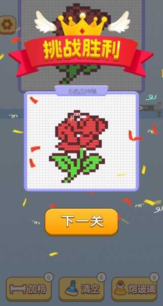4、完成当前关卡图案编织后,系统将自动触发胜利结算界面,点击"下一关"按钮即可进入新关卡,继续解锁更多精美编织图案。