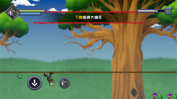 僵尸不能死手机版是b站UP主自制的同人跑酷游戏,不过这里在的主角是僵尸,在游戏中玩家将需要操控僵尸来进行跑酷,在跑酷的过程中我们需要规避来自植物的攻击,比如大嘴花、豌豆射手和寒冰射手等等。玩家只需要操控上、下和技能三个键位就行,非常容易,即时没有玩过跑酷类型的玩家也是能够快速上手的。