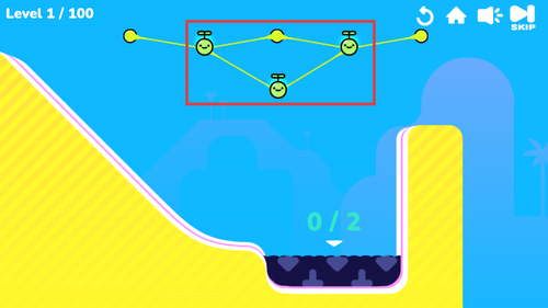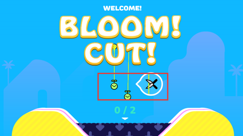 1、进入游戏后根据初始提示,点击需要剪断的绳索位置,使植物脱离悬挂状态并落入下方指定区域。
