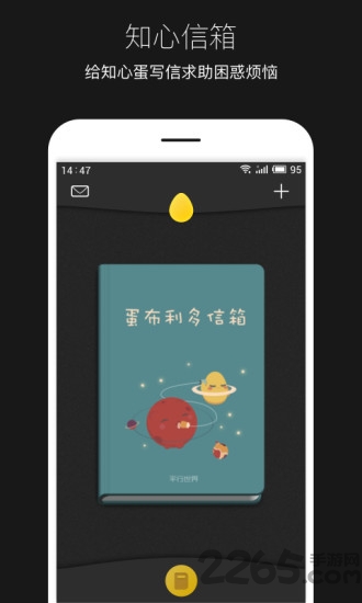 平行世界游戏是一款充满着治愈系的休闲游戏,玩家可以在这里获得一个平静安宁的港湾,你可以将自己的一些心事以及困苦烦恼都记录在这里,还能和平时世界的自己进行心灵的交流,有需要的玩家就来2265安卓网下载吧!