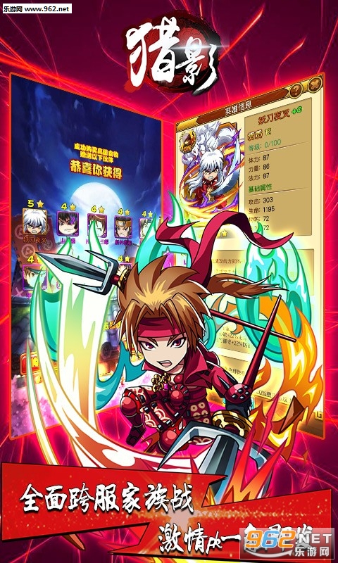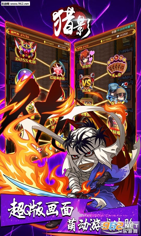《猎影超v》是一款精美的日漫风日本战国手游大作,玩家可以体验到创新的伙伴养成系统和战斗玩法;角色设计采用Q版画面,以立体人物形象带给你最美的视觉享受、最轻松的操作、最具满足感的全方位游戏体验。两大主角,超过100个武士人物,自由搭配组合最强阵容;更有游戏独创的连锁技能,让你尽享爆屏的快感。除此之外,游戏内还新增挂机玩法,让你休闲、娱乐两不误。