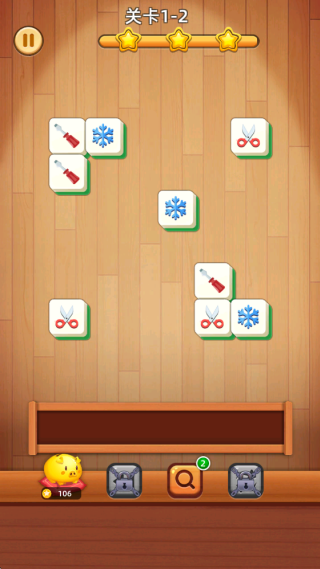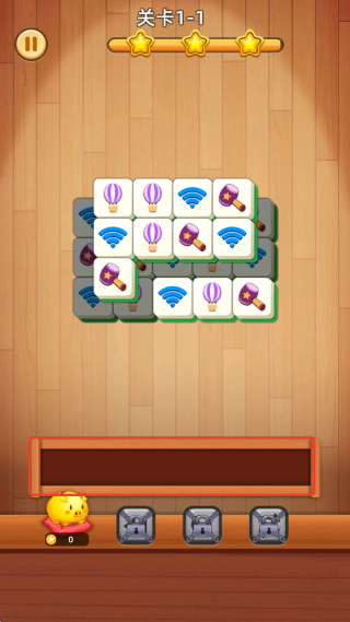 1、游戏开始后,将底部备选区的方块拖拽至上方消除栏,当三个相同方块形成连续排列时自动触发消除效果。