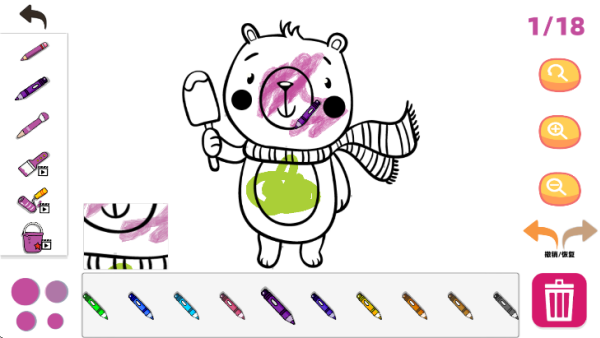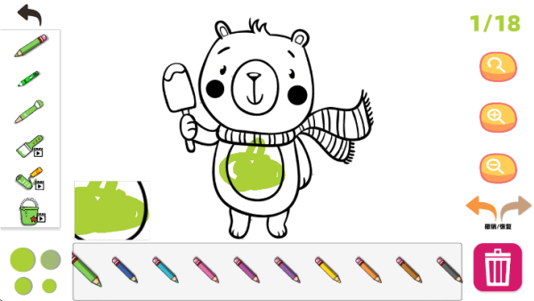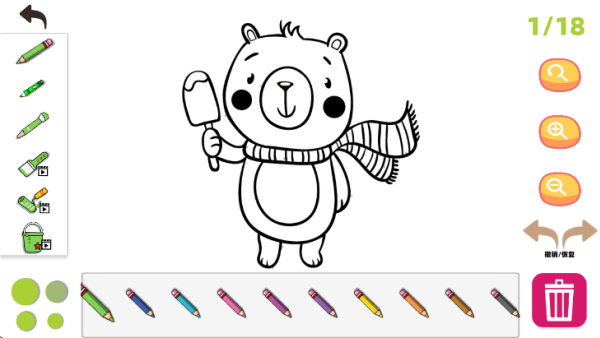选定如北极熊等线稿后,点击右侧调色板即可开启创作。