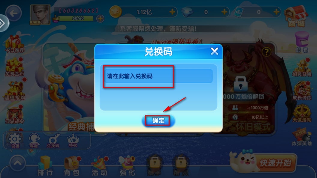 输入兑换码,点击【确定】即可兑换